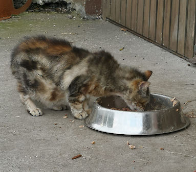 Die Katzenhilfe kümmert sich um Streuner, die oft ohne direkten menschlichen Bezug aufgewachsen und deshalb sehr scheu sind. Diese Tiere schlagen sich mehr schlecht als recht durch, sind meist unterernährt und von Parasiten befallen. Ebenso geht es vielen Hof-/Dorfkatzen: Sie werden sich selbst überlassen, werden - wenn überhaupt - zu allem Übel häufig noch mit Milch "gefüttert" und sollen sich vom Mäusefangen ernähren. Viele von ihnen sind in einem sehr schlechten gesundheitlichen Zustand, haben Würmer, Ohrmilben, Haarlinge, Zahnprobleme, Verletzungen und mehr. Wenn uns solche Katzen gemeldet werden, versuchen wir sie so schnell wie möglich einzufangen. Sie werden tierärztlich behandelt, kastriert und danach wieder an ihre angestammten Plätze zurückgebracht.
