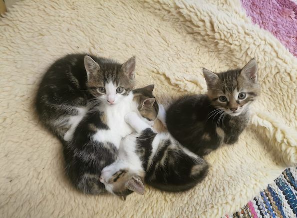 - Der Wurf mit einem „Unfall“ erklärt. Die Katze hatte angeblich schon einen Kastrationstermin, ist aber versehentlich kurz vorher abgehauen und kam trächtig zurück.